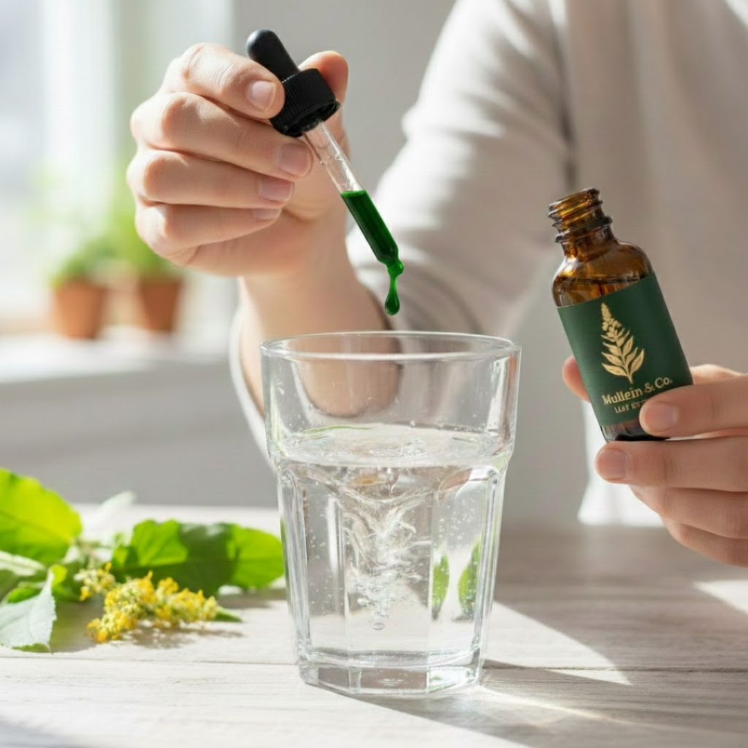 Just mix Mullein & Co.™ Lung Support Drops into water and enjoy gentle, plant-powered support for clearer, more comfortable breathing, every day.
